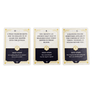 Launch your adventure by shuffling the Story Cards and drawing three. After reading the prompts, arrange them in the order that makes the most sense to you, taking cues from the ORC story-telling system – Opening, Rising or Climactic Action. Now you have a beginning, middle, and end for your story that’s loose enough to adapt but structured enough to move the story forward. Not what you wanted? Shuffle and re-draw.