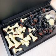 This classic black and white chess board features a magnetic surface with magnetic chess pieces. The perfect addition for any chess player on the go. Make your move!