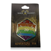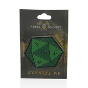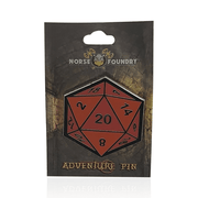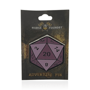 Flaunt your love of the game with this pin featuring a 20-sided die!