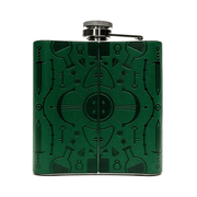 This Nott the Brave Flask is wrapped in beautiful green vegan leather with debossed symbols representing Nott and a fancy button icon on its front. Unfortunately infinite booze is not included. You can, however, fill this flask up with the six ounces of the drink of your choosing.