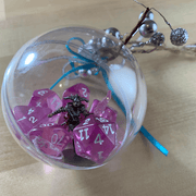 These hand crafted ornaments feature a random mini and a set of dice!
