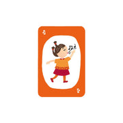 Depending on the color of the card you draw, use either charades (mime), sounds (shout), or both to give clues to the guessing players. Each correct guess wins you a card.