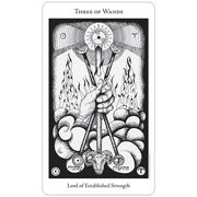 The details and symbols in this deck reveal many of the esoteric workings of the Secret Order of the Golden Dawn– with incredibly detailed black and white designs that emphasize astrological attributes, geometric symbolism, numerical and spiritual elements.