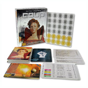 You begin a game of Coup with two coins and two influence. On your turn, choose an action or challenge the actions of other players! The winner of the game is the one with any influence left, so play your cards right and stage a Coup!