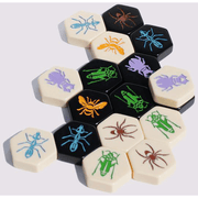 The pieces are added to the playing area thus creating the board. As more and more pieces are added the game becomes a fight to see who can be the first to capture the opposing Queen Bee.