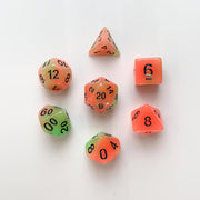 Dice 7-set Glow in the Dark (16mm) Mango / Black