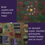 Cursed Lands is the perfect companion to your Curse of Strahd campaign! With over 1000 reversible terrain pieces, you can turn a forest into a crypt with a simple flip of a card! The possibilities are endless for all your haunted forest, witchy cauldron, and creepy cemetery dreams.
