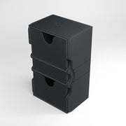 Two removable card holders keep up to 200 double-sleeved cards in this large and extremely robust deck box. The Stronghold is covered with elegant Nexofyber material, with soft microfiber inside, and also contains an accessories drawer.