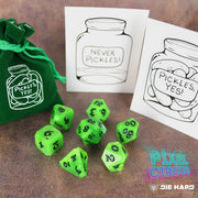 Die Hard Dice has teamed up with iconic community-driven content creators PixelCircus to bring you this adorable dice set and bag! Pickle YES!