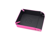 Dice Tray (8x8in) Square Leather Black / Velvet Pink