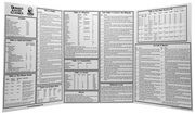 A perfect screen for your games of Dungeon Crawl Classics. The player-facing side features detailed artwork, and the Game Master-facing side features helpful tables and information for running games!