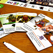 At the beginning of each game, players pick one of five Characters, each with a thematic ability that helps them collect one type of points easier, as they draw their line through the maze. Normally Monsters or Treasure need to be entirely covered with marker to be collected. But Rogues only need to touch treasure, and barbarians only need to fill in the monsters' heads to defeat them! While anyone can cast a spell by tracing an intricate pattern, a Wizard only needs to draw a small circle!