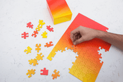 Bryce Wilner’s Gradient Puzzle is a vibrant way to meditate on color. The act of putting it together is slow and deliberate, where the color of each piece is used to locate its proper position.