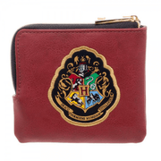 This crimson L-zip wallet features a full-color Hogwarts crest applique on one side, and a gold 9 3/4 stamp on the other. Wizard money not included.