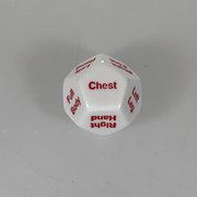 This twelve sided dice features different body parts to randomize attack hits during roleplaying games. Or create your own game!