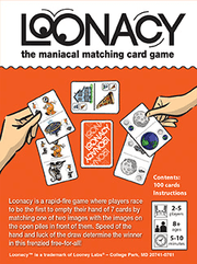 Loonacy is a rapid fire game where players race to be the first to empty their hand by matching images with the images on the open piles in front of them.