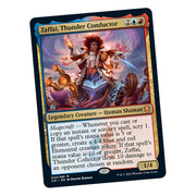 The Display Commander is the size of a card, printed on thick cardboard. This means there are no more oversized Commander cards.