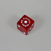 These red six sided dice are semi translucent and feature white pips, with Fabulous Las Vegas featured on the 1 side.