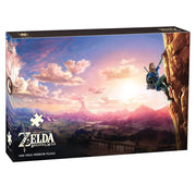 Relive the Legend of Zelda's Breath of the Wild with this beautifully colorful 1000 piece premium puzzle of hero Link scaling Hyrule.