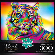 The kaleidoscope of colors in “Tiger Stripes,” a 300 large-piece jigsaw puzzle from Buffalo Games’ Vivid Collection, embody the true essence of the tiger featured in the image – bold and powerful!