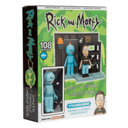- Construction set features buildable Mr. Meeseeks and Jerry figures, and garage rack setting with morning star spiked weapon accessory based off iconic scenery “Rick and Morty”
