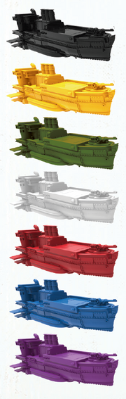 In the airship module, 2 airship tiles are randomly paired at the beginning of the game. Each player’s airship miniature has abilities, as well as the core ability that airships are free to move onto any territory and across rivers. Each player starts with their airship on their home base, so they can start moving out of their home area right away.