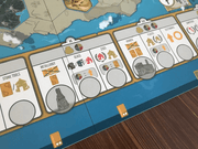 In Tapestry, you start from nothing and advance on any of the 4 advancement tracks (science, technology, exploration, and military) to earn progressively better benefits. You can focus on a specific track or take a more balanced approach. You will also improve your income, build your capital city, leverage your asymmetric abilities, earn victory points, and gain tapestry cards that will tell the story of your civilization.