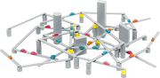 In Tokyo Highway, you and other players will build columns of varied heights by using the 66 cylinders of the game, and then connect sticks between the columns to serve as roadways.